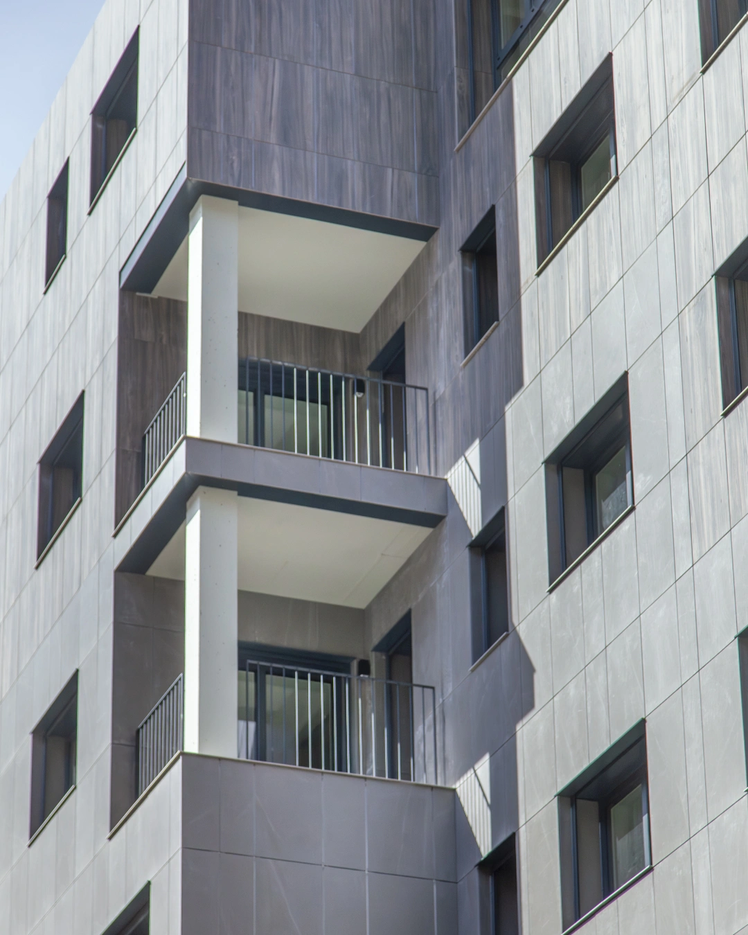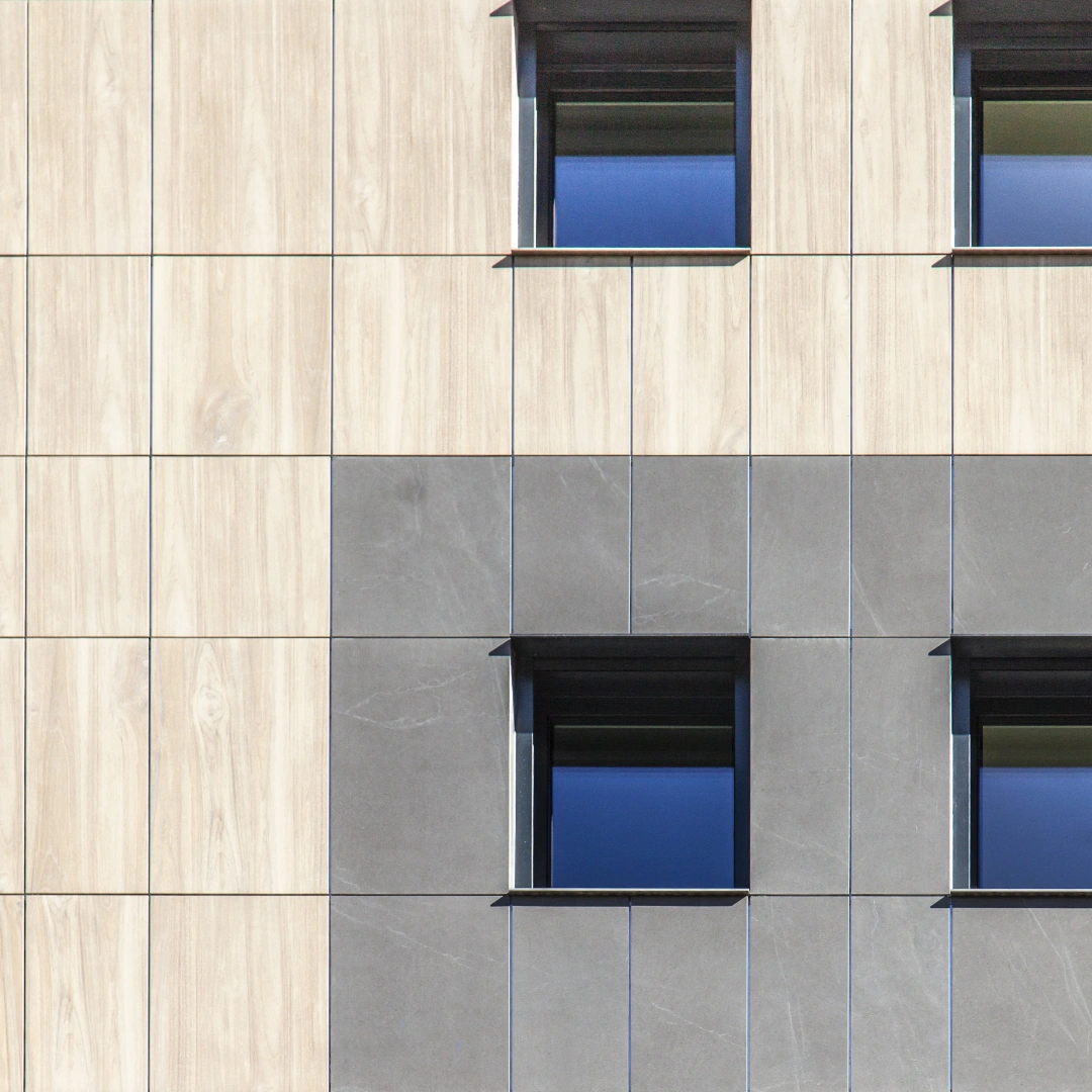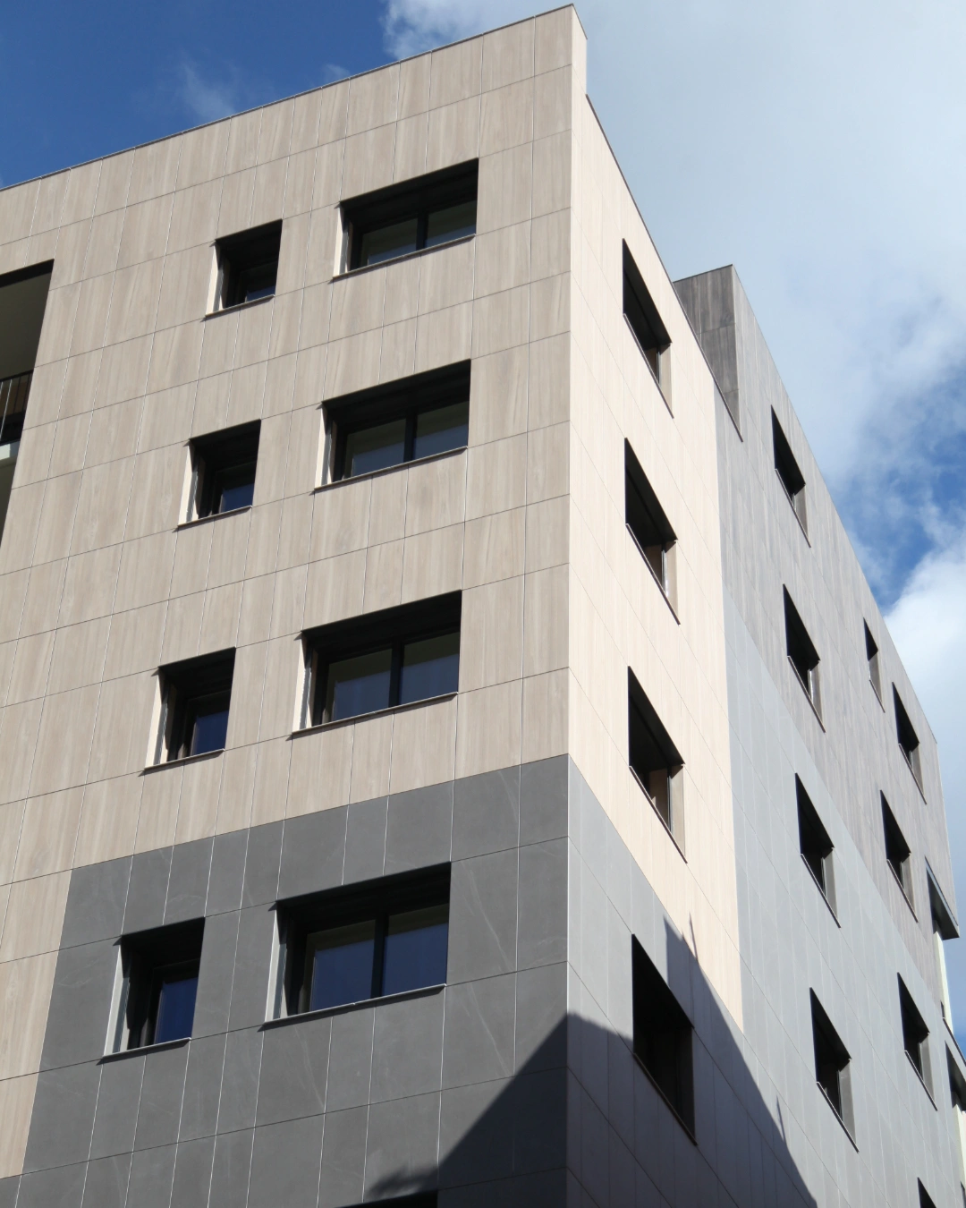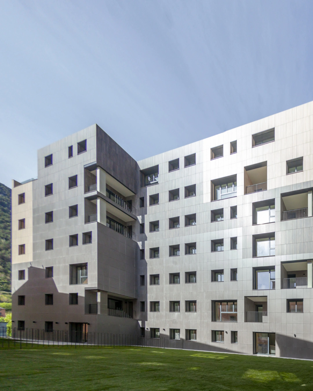 Projecte que es destaca pel desenvolupament d’una façana ventilada que combina eficiència energètica i integració paisatgística. Aquesta s’ha executat amb panells composite amb acabats que imiten textures de fusta clara, fusta fosca i pedra, aconseguint un efecte visual equilibrat i natural.
