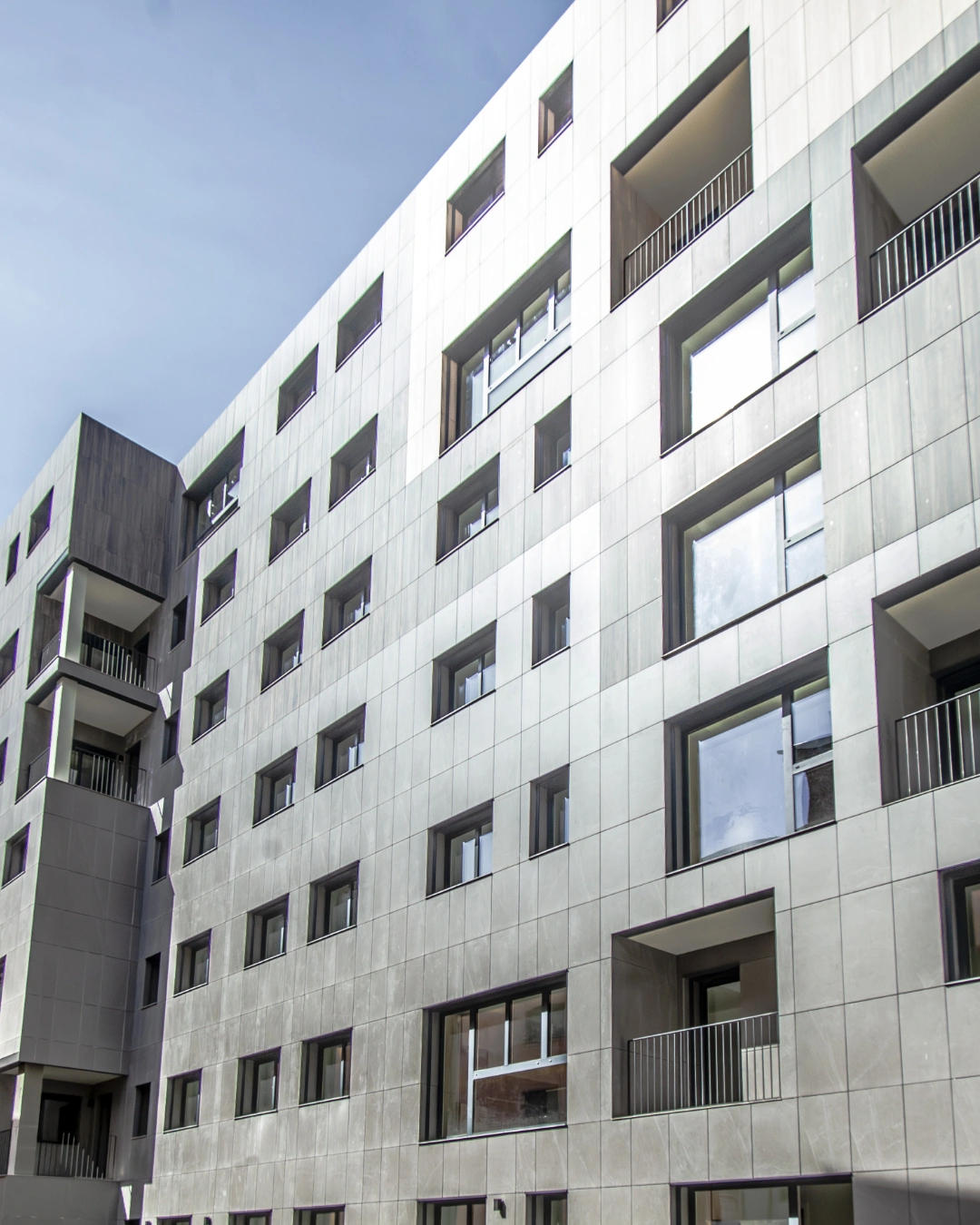 Per evitar una imatge excessivament massissa, s’han utilitzat acabats combinats que aporten ritme i lleugeresa a la composició de l’envolvent. La façana incorpora finestres de triple vidre, oferint un excel·lent aïllament tèrmic i complint els requisits del reglament energètic.